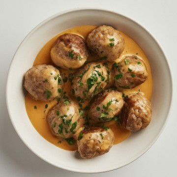<p>Beef and pork meatballs in a brandy sauce.</p>