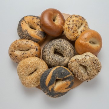 <p>Delicious platter of assorted bagels (sesame, poppy seed, onion, whole wheat, cinnamon-raisin, plain and everything) served with scallion, plain, vegetable cream cheese, butter and preserves.</p>