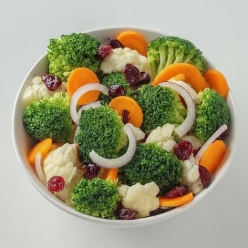 <p>Fresh broccoli, cauliflower, carrots with dried cranberries and onions.</p>